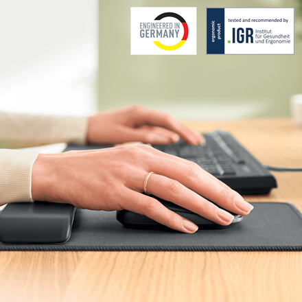Certyfikowana przez IGR (Instytut Zdrowia i Ergonomii) podkładka zaprojektowana została z myślą o zapewnieniu maksymalnego komfortu podczas pracy w pozycji siedzącej lub stojącej i łączy ergonomiczną konstrukcję z wysoką kontrolą śledzenia zarówno podczas używania myszy optycznej, jak i laserowej. Podpórka pod nadgarstek posiada piankową wyściółkę i 2 ustawienia wysokości, aby zapewnić prawidłowe ułożenie nadgarstka i zmniejszyć ryzyko powtarzających się urazów. Ta efektowna, zaprojektowana w minimalistycznym stylu podkładka pod mysz może mieć pozytywny wpływ na Twoje samopoczucie - dzięki niej w prosty sposób stworzysz perfekcyjne stanowisko, które pozwoli Ci zachować aktywność w czasie pracy.