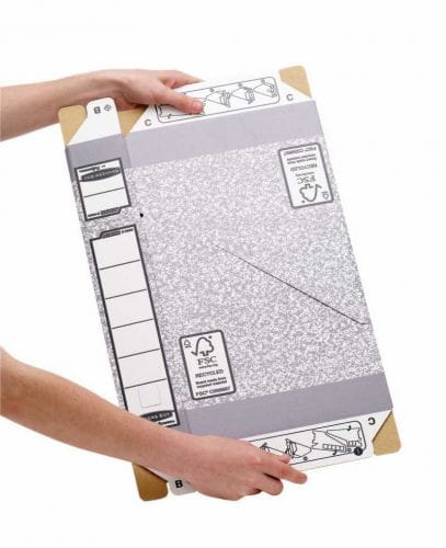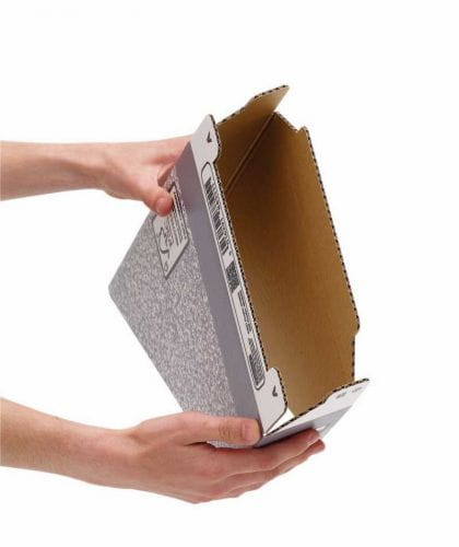 Wytrzymałe pudło z ergonomicznymi uchwytami wyposażone w system automatycznego składania FastFold®.