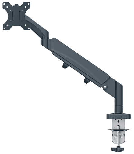 - Pojedyncze ramię z wbudowaną sprężyną gazową ułatwia regulację wysokości monitora (w zakresie 185-435 mm)