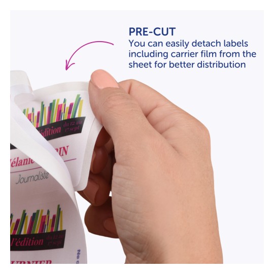 • Dzięki nacięciom na podkładzie identyfikatory można oddzielić od arkusza i używać pojedynczo.