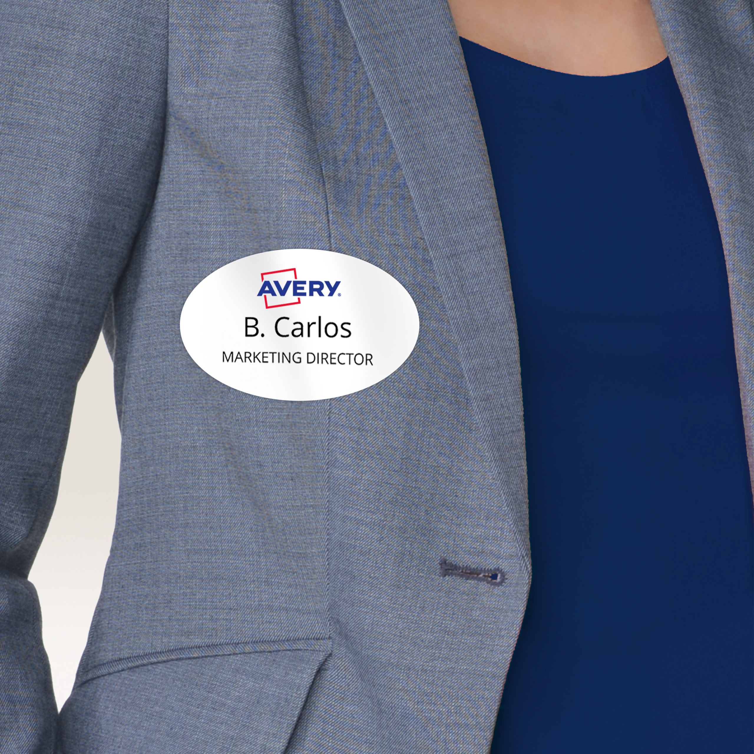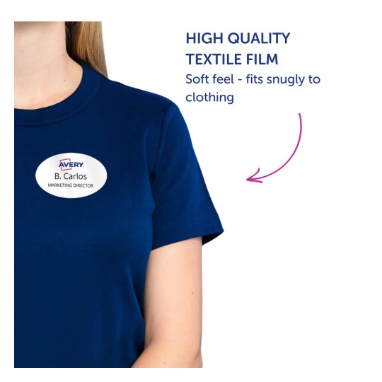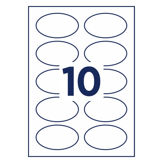 Samoprzylepne identyfikatory do zadruku, owalne, sztuczny jedwab Avery L4882-20 / 85 x 50 mm, A4, 20 arkuszy - biały