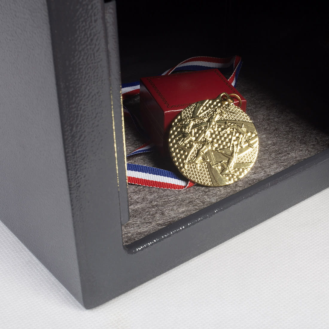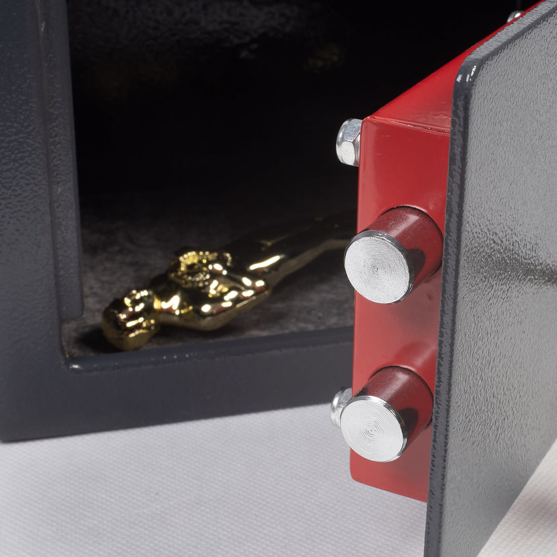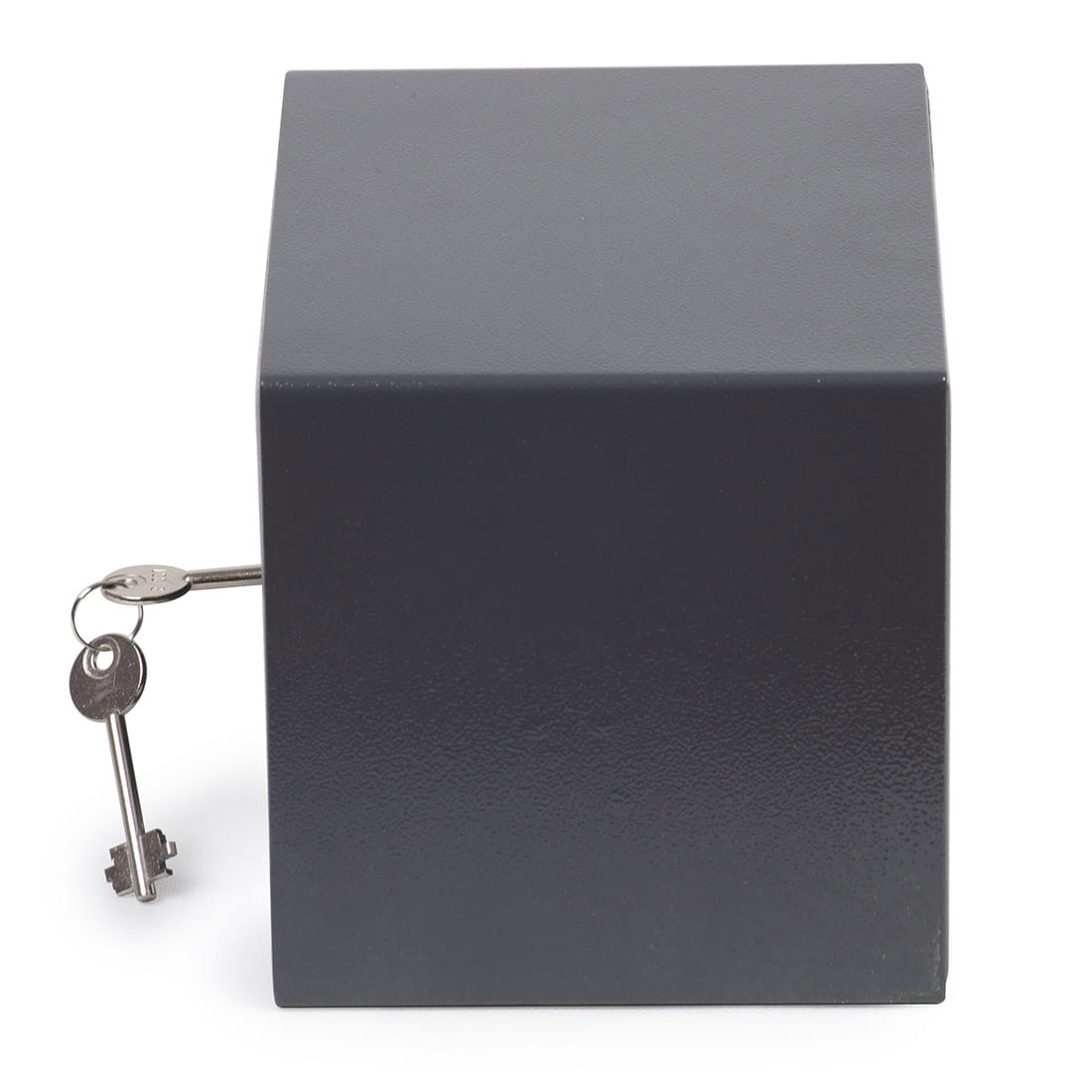 Metalowy sejf w kolorze ciemnoszarym wyposażony w zamek ryglowy zamykany na klucz. W zestawie dwa solidne kołki rozporowe typu kotwa.