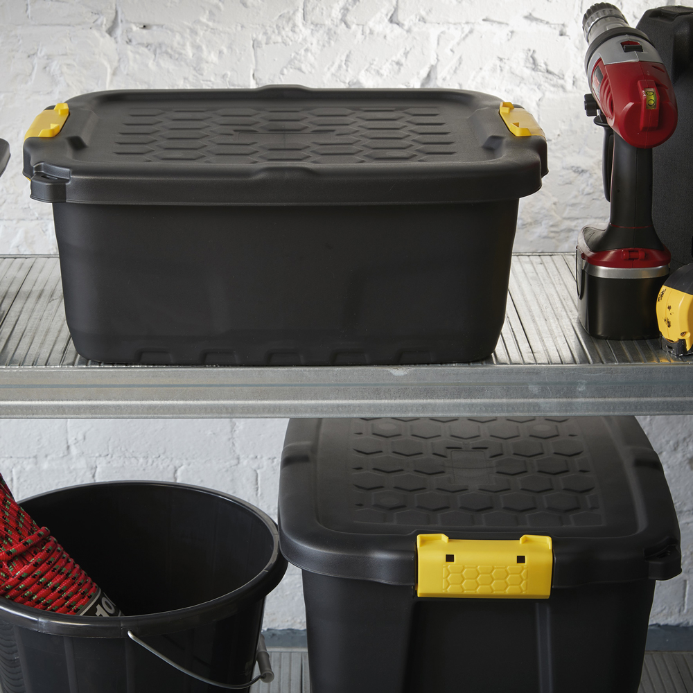 - uniwersalne zastosowanie – duża pojemność i wytrzymałość sprawiają, że pojemnik nadaje się do przechowywania narzędzi, sprzętu, akcesoriów, dokumentów i innych przedmiotów