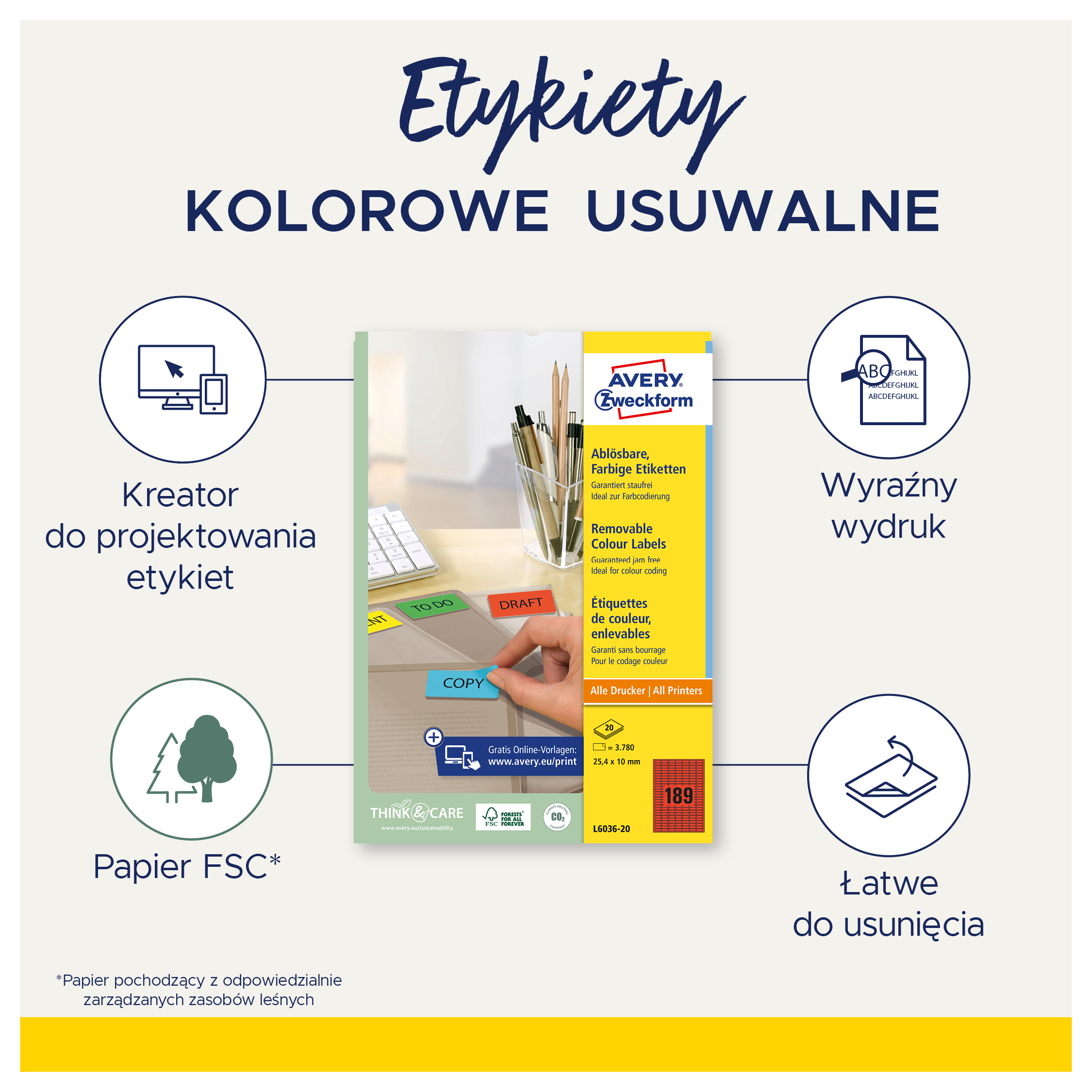 • Szybko i łatwo zaprojektuj etykiety w oprogramowaniu online Avery Design&Print z darmowymi szablonami na stronie www.avery-zweckform.pl/oprogramowanie