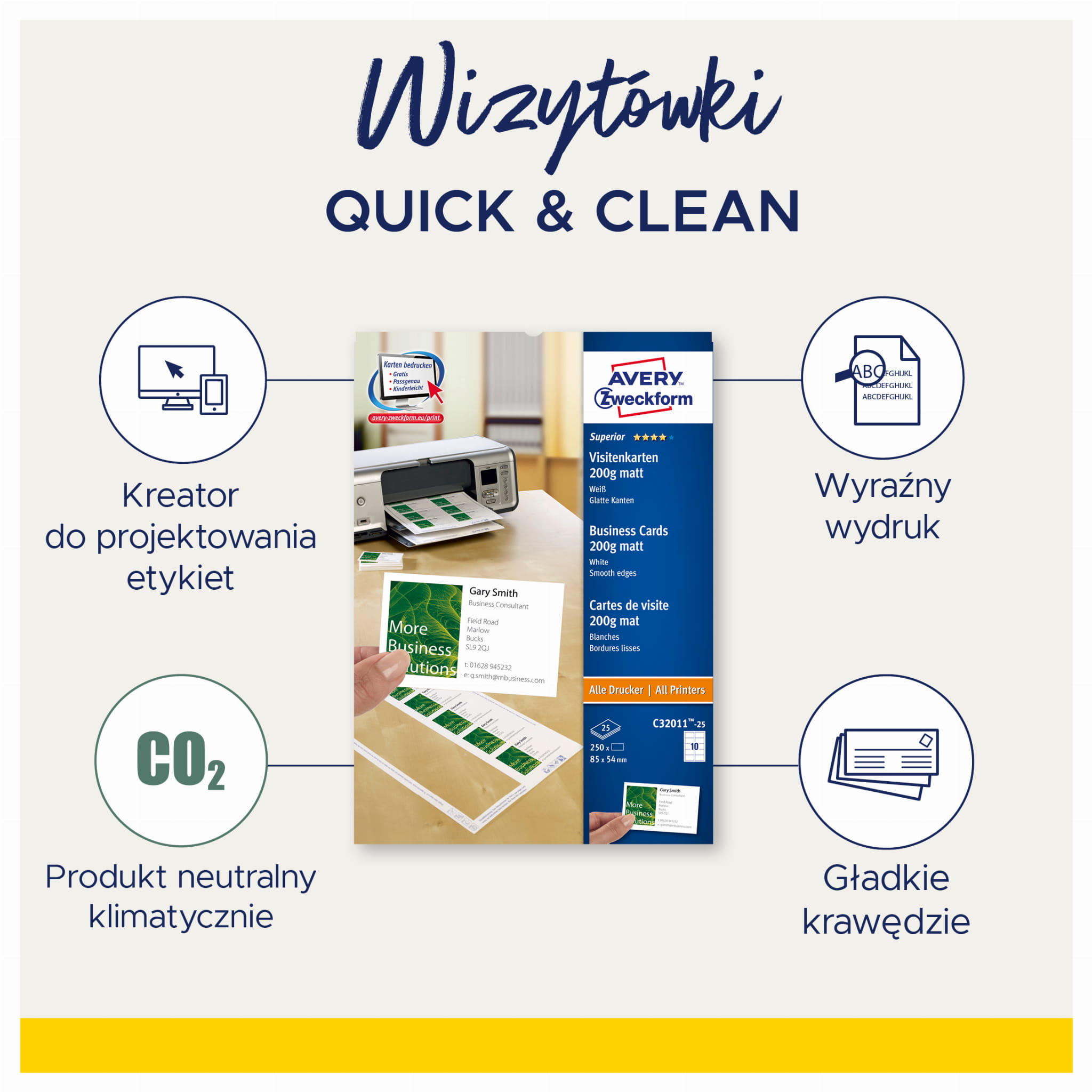 Wizytówki dwustronne Avery Zweckform Quick&Clean™ C32026-10 - 85 x 54 mm , 10 arkuszy - 270 g/m² - białe
