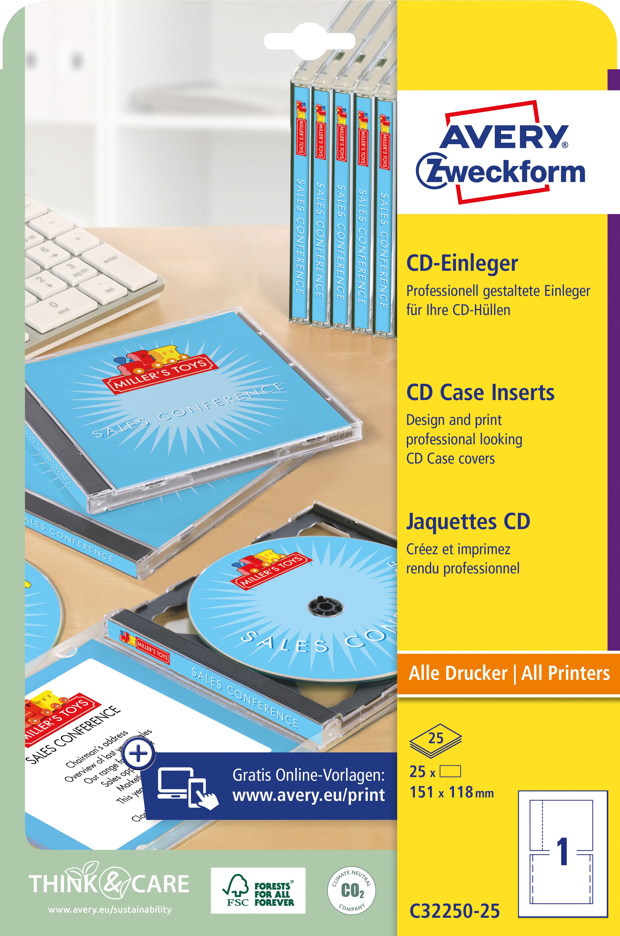 Wkładki do pudełek CD Avery C32250-25 / 151 x 118 mm, 25 arkuszy - biały