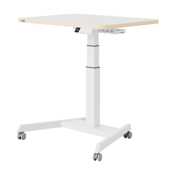 - Kółka są wyposażone w blokady, które zapewniają bezpieczeństwo użytkowania biurka do pracy na stojąco z elektryczną regulacją wysokości, zapobiegając jego przesuwaniu się podczas użytkowania.