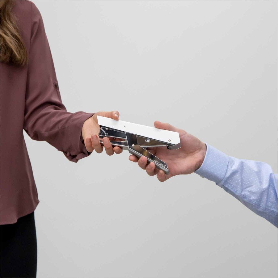- Wytrzymałe, wysokiej jakości, metalowe rączki w układzie nożycowym zapewniają bezproblemowe zszywanie